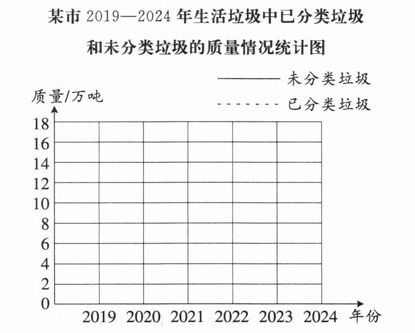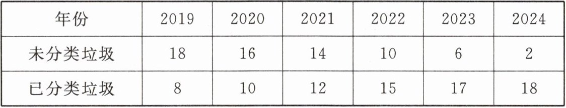 垃圾分类可以减少环境污染,节省土地资源。下面是大江上网查到的某市2019—2024年生活垃圾中已分类垃圾和未分类垃圾的质量情况统计表。