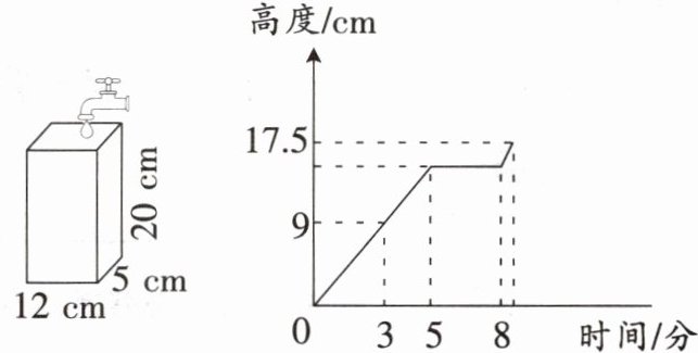 从图中可知$5$分钟后水面高度是$17.5cm$,容器高$20cm$。