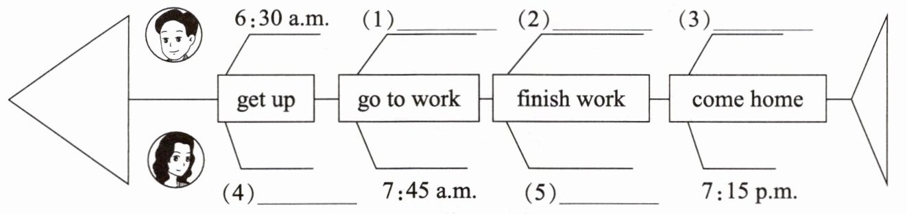 任务二:(1)7:30 a.m. (2)6:45 p.m. (3)7:15 p.m. (4)6:30 a.m. (5)7:00 p.m.