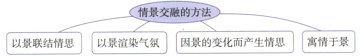 以景联结情思、以景渲染气氛、因景的变化而产生情思、寓情于景