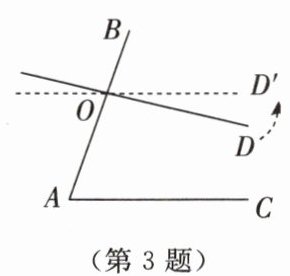 3. 如图所示,已知$ ∠A = 70° $,O是AB上一点,直线OD与AB的夹角$ ∠BOD = 82° $. 要使OD//AC,直线OD应绕点O按逆时针方向至少旋转______°.