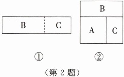 2. 将图①中的长方形分成 B,C 两部分,恰与正方形 A 拼接成图②所示大正方形。若正方形 A 的面积为 4,拼接后的大正方形的面积是 5,则图①中原长方形的周长为()