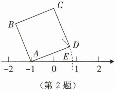 2. 如图所示,面积为 3 的正方形 ABCD 的顶点 A 在数轴上,且表示的数为 -1. 若 AD = AE,则数轴上点 E 所表示的数为()