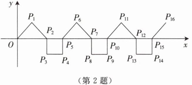 2. 如图所示,在平面直角坐标系中,动点P从原点出发,第1次运动到点$P_{1}(1,1)$,第2次运动到点$P_{2}(2,0)$,第3次运动到点$P_{3}(2,-1)$,第4次运动到点$P_{4}(3,-1)$,第5次运动到点$P_{5}(3,0)$……按这样的运动规律,点$P_{28}$的坐标是()
