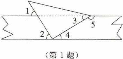 1. 将一直角三角尺与纸条按图示放置,下列条件:①$∠1= ∠2$;②$∠3= ∠4$;③$∠2+∠4= 90^{\circ }$;④$∠4+∠5= 180^{\circ }$.其中能说明纸条两边平行的有()