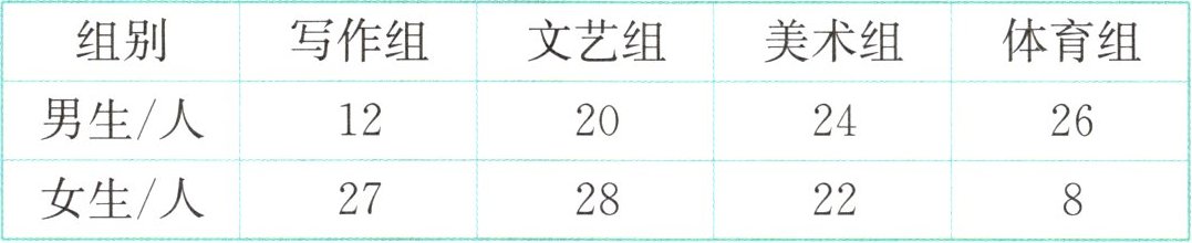 (2)示例:参加美术组的男生比女生多2人;参加写作组的女生比参加体育组的女生多19人