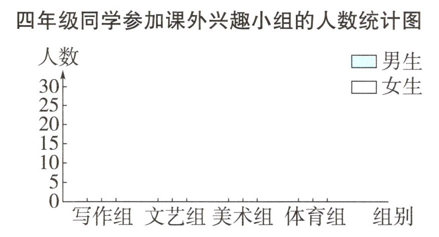 4. (数据意识)阳阳对本校四年级同学参加课外兴趣小组的人数进行了调查,统计表如下。