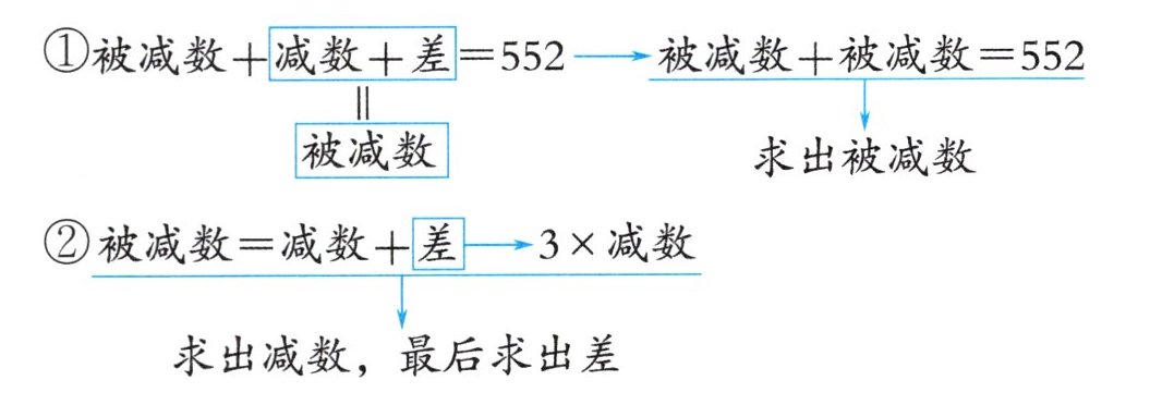 ①被减数+减数+差= 552→被减数+被减数= 552
