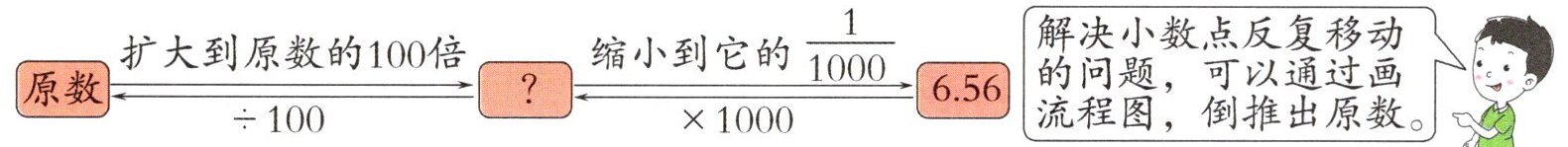 原数$\xrightarrow[{ ÷ 100}]{扩大到原数的100倍}$?$\xrightarrow[{ × 1000}]{缩小到它的\frac{1}{1000}}$6.56