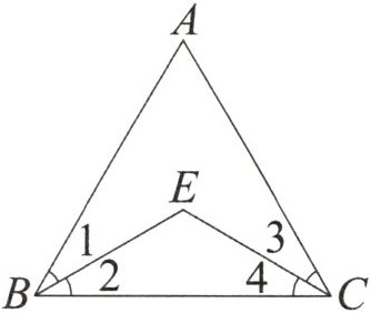 6.(素养培优)如图,三角形ABC和三角形EBC都是等腰三角形,三角形ABC的一个角是$60^{\circ },∠1= ∠2,∠3= ∠4$,求$∠BEC$是多少度。