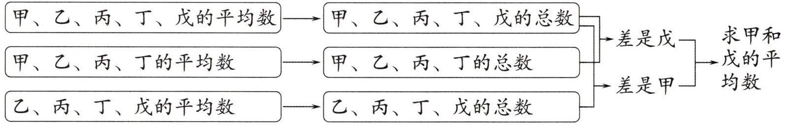 甲、乙、丙、丁、戊的平均数→甲、乙、丙、丁、戊的总数