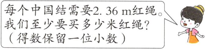 每个中国结需要2.36m红绳。我们至少要买多少米红绳?(得数保留一位小数)