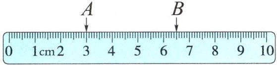 3. 如右图,用小数表示箭头所指的刻度。A表示()dm,B表示()m。