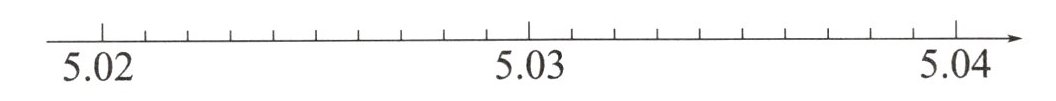 6. (数形结合)一个三位小数精确到百分位后是5.03,这个数最大是(),用“↓”在下面的直线上标出来。