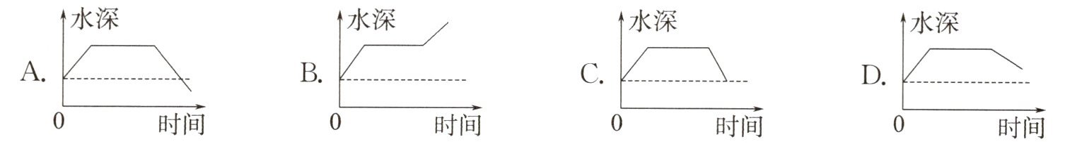 3. (几何直观)容器中有一些水,果果将一根圆柱形铁棒竖直匀速地放入水中,共溢出800mL水,随后又将铁棒匀速取出。下面选项中,正确反映容器中水位变化情况的是()。