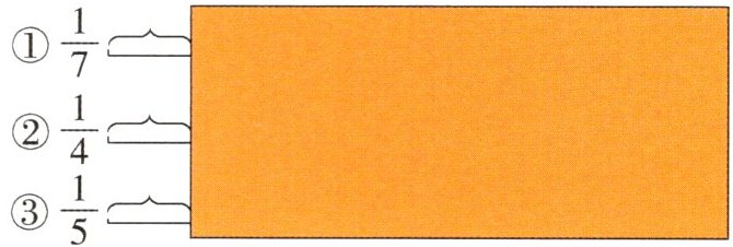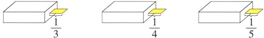 2.(变式提升)如图,用一张纸盖住三张纸条的一部分,甲、乙、丙三张纸条露出来的部分同样长,分别是长度的$\frac {4}{11}$、$\frac {1}{3}$、$\frac {4}{5}$,根据以上信息可以推断,()。