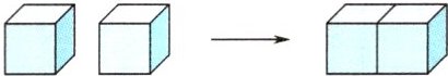 例1 (1)2个棱长是1厘米的正方体,它们的表面积总和是多少平方厘米? 把它们拼成一个长方体后,表面积减少了多少平方厘米?