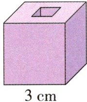 体积:$ 3 \times 3 \times 3 - 1 \times 1 \times 1 = 26 ( \mathrm { c m } ^ { 3 } ) $