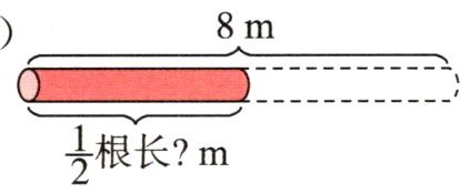 求8m的$\frac{()}{()}$,可以列式为()×()= ()(m)。