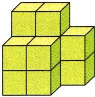 5. 右图的立体图形是由棱长为 $ 2 \mathrm{cm} $ 的小正方体摆成的,它的体积是() $ \mathrm{cm}^{3} $。再添上至少()个这样的小正方体,就能变成一个大正方体了。