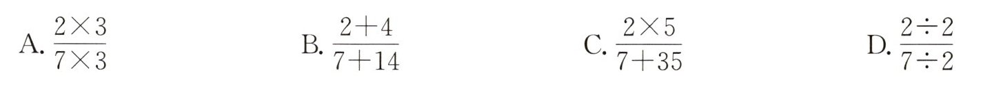 4. (一题多解)下列选项中,与$\frac{2}{7}$不相等的是()。