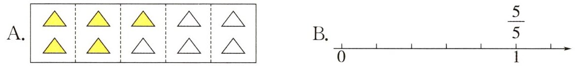 6. (数形结合)下面表示$\frac{5}{5}$的意义的四种方法中,错误的是()。