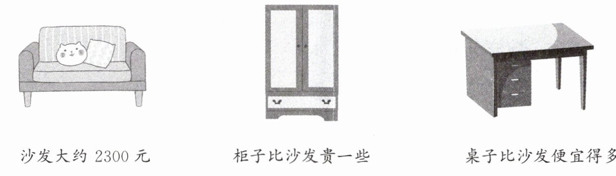 沙发大约 2300 元 柜子比沙发贵一些 桌子比沙发便宜得多