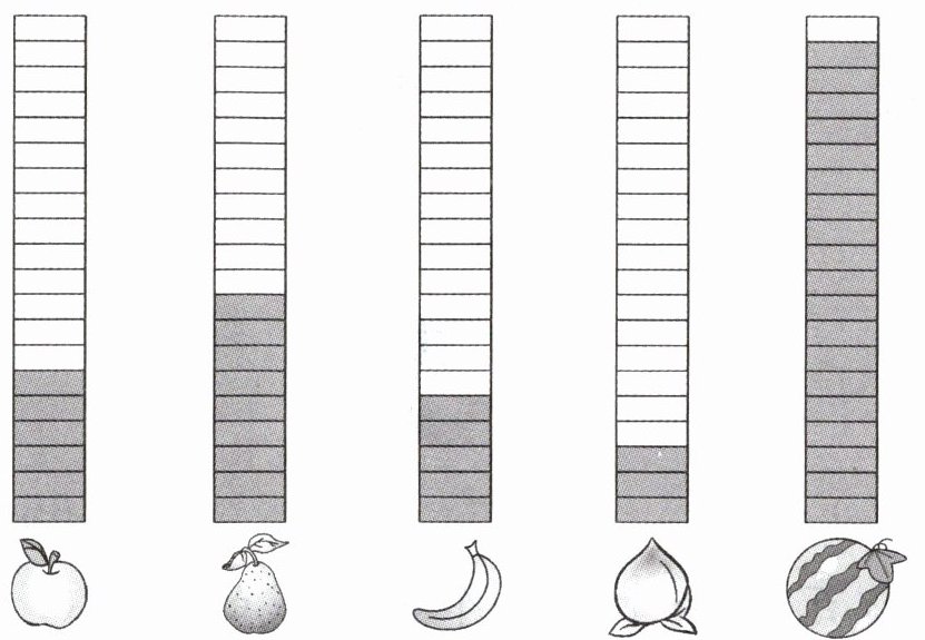1. 水果店卖出(西瓜)的箱数最多,卖出(桃)的箱数最少。