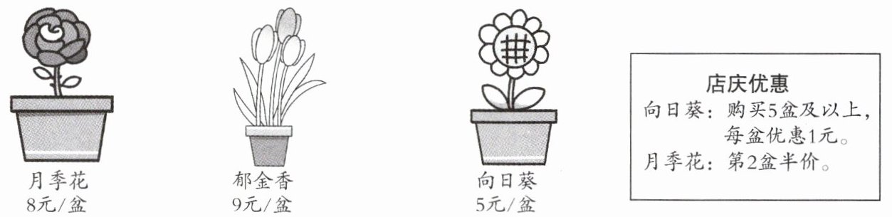 (2)王阿姨本来准备买 4 盆向日葵,你认为她怎么买最划算?