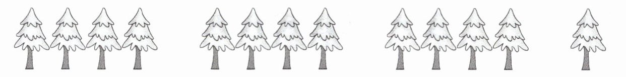 $13\div4 = 3$(组)$\cdots\cdots1$(棵)