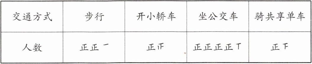 2. 坐公交车的比步行的多()人,骑共享单车的比坐公交车的少()人。