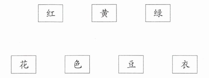 用“红”“黄”“绿”三个字分别与“花”“色”“豆”“衣”四个字组词,共有多少种不同的组法?所组的词有哪些?(连一连)