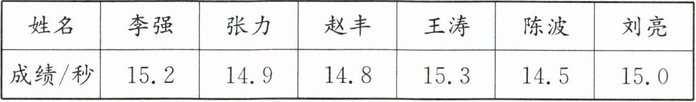 五、在学校运动会上,参加 100 米跑的六名选手的决赛成绩如下: