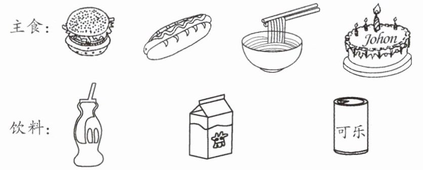 2. 主食和饮料只能各选 1 种,下面的午餐有多少种不同的搭配?