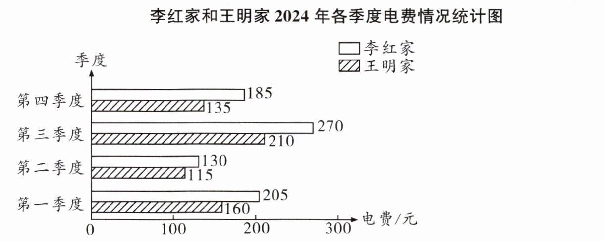 2. 下面是李红家和王明家 2024 年各季度电费情况统计图。