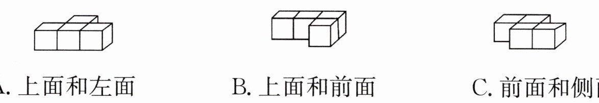 A. 上面和左面 B. 上面和前面 C. 前面和侧面