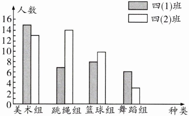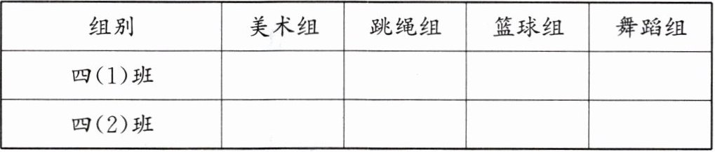 3. 下面是四(1)班和四(2)班同学参加课外活动小组的统计情况。