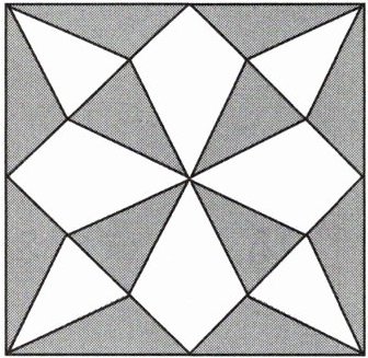 旋转木马屋上的玻璃很漂亮,其中一块如右图。大正方形的边长为10cm,先连接大正方形各边的中心点得到小正方形,再将小正方形每边三等分,然后将三等分点与大正方形的顶点及中心相连,就可以得到右图的图形。这块玻璃的彩色部分(图中阴影部分)的面积是多少呢?
