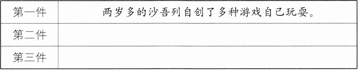 1. 阅读短文,说说短文写了关于沙吾列的哪三件事,用简洁的语言概括出来。