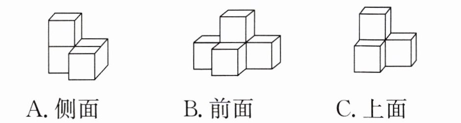 是由6个小正方体搭成的物体,从上面看到的图形是()。