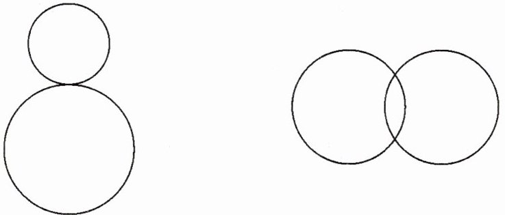 第一幅图有$1$条对称轴(连接两圆圆心的垂直直线);第二幅图有$2$条对称轴(两圆连心线所在直线和经过两圆交点且垂直于连心线的直线)。