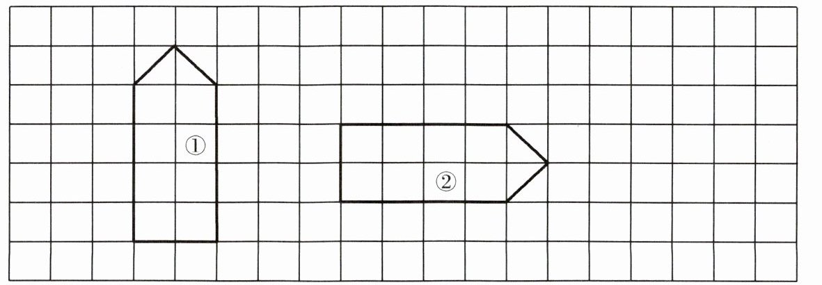 图形①先向右平移$5$格,再绕最右边的顶点顺时针旋转$90^{\circ}$得到图形②。