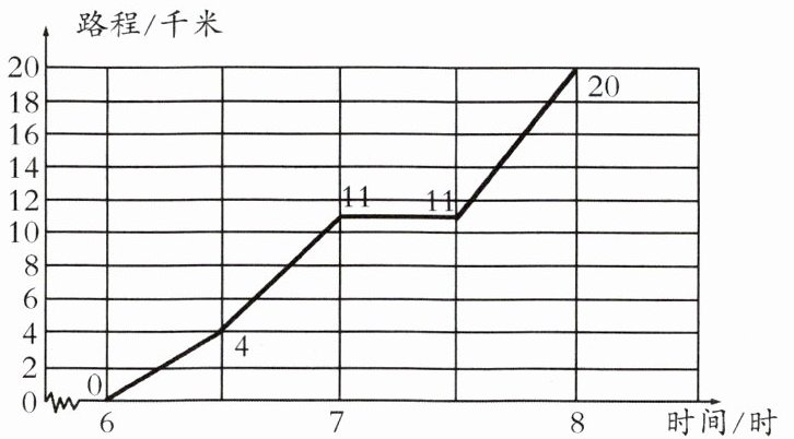 $6$时到$7$时:$(11 - 0)\div(7 - 6)=11$(千米/时)。