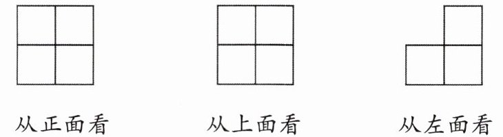 5. 一个几何体,从三个方向观察到的图形如下图所示,则这个几何体是由()个小正方体拼成的。