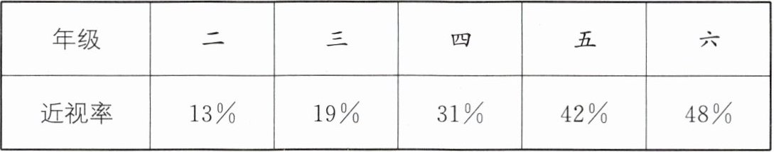 观察我们的身边,你会发现不少小学生都戴上了眼镜。请根据“希望小学二至六年级学生视力调查”主题活动中搜集到的相关数据,回答问题。