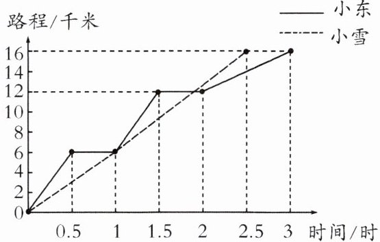 3. 下面是小东和小雪两位同学从甲地出发,在同一条路上行驶到乙地的折线统计图,请根据统计图回答问题。