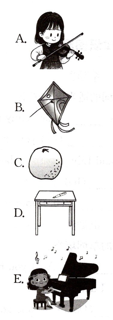 ()5. Helen is good at playing ______ violin. E.