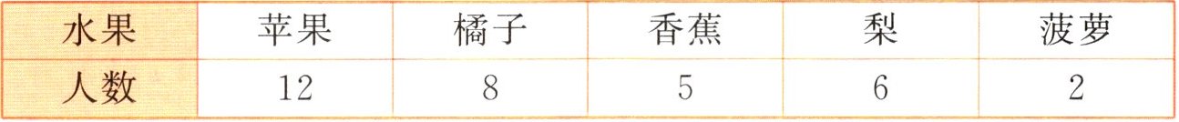 (社会实践)果果调查了本班同学最喜欢吃的水果,调查结果如下表。