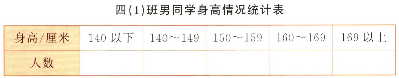 2.(数据意识)下表是四(1)班男同学的身高情况。(单位:厘米)