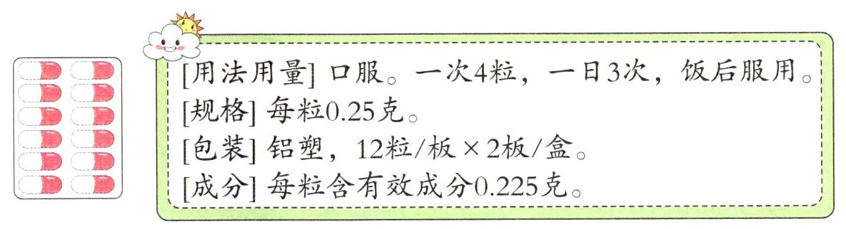 2. (生活体验)根据用药说明,病人每天需服用多少克药?其中含有效成分多少克?